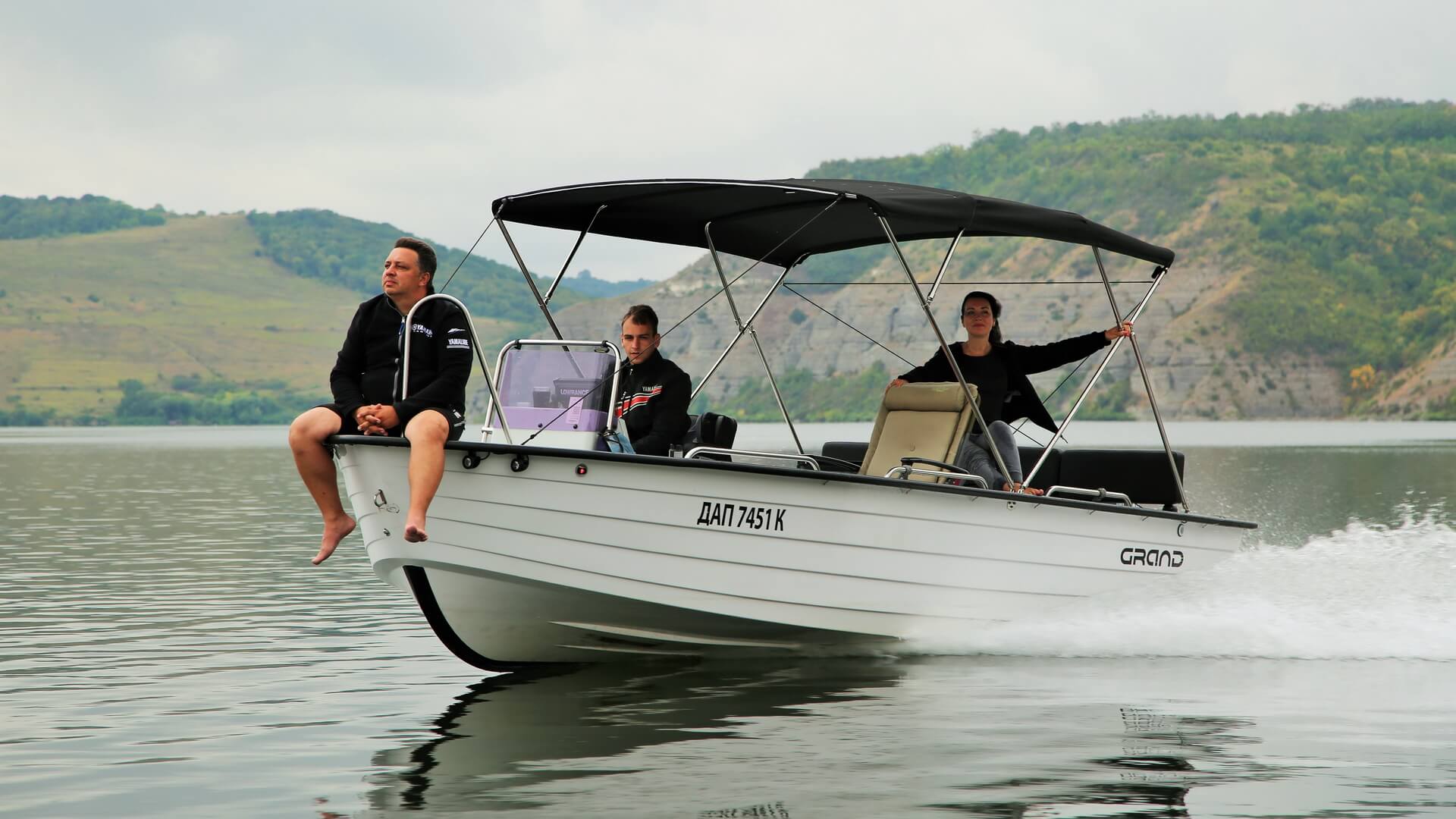 GRAND Nautilus N585 має посилений склопластиковий корпус з рульовою консоллю, вітровим склом, яке захистить вас від вітру та бризок, та функціями кермового управління; місткий форпік – носовий якірний відсік; задній кормовий диван з трьома скриньками. Палуба та сидіння мають протиковзне покриття. По бортах встановлені шість поручнів, по три з кожного боку, а в носовій частині релінг безпеки. Опціонально можна встановити електроякір та/або якірну електролебідку на носовому майданчику. Просторий кокпіт з високими бортами ви оціните під час риболовлі, почуваючи себе вільно та безпечно. Навести лад у човні після риболовлі, не складе труднощів, у човні самовідливний кокпіт – достатньо пару відер води.